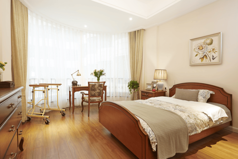我们深知,不同长者有不同的养老需求,因此精心打造了五星级宾馆式养护区与家居式养护区两大板块,适配各类长者的居住需求。五星级宾馆式养护区,专为半自理、认知障碍、舒缓疗护等长者设计,设置52平方米VIP套间、52平方米豪华双人间、31平方米普通双人间,房间内配备氧气装置,全方位保障长者居住舒适与安全。每层都设有护士站,医护人员24小时在岗值守,配备先进的天轨移位系统,为长者站立、行走、康复、洗浴等日常活动提供便捷保障,让半自理、非自理长者也能拥有独立、有尊严的生活。