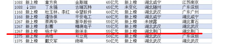 上游新闻梳理公开报道发现,洋丰集团掌舵人杨才学近十年间多次登上胡润富豪榜。据湖北日报旗下支点财经报道,今年10月28日,2025胡润百富榜发布,新洋丰的杨才学以55亿元身家入围胡润百富榜,排名1267位。另据支点财经2023年9月报道,同时入围2023湖北上市公司个人财富榜和2022年胡润百富榜的,还有周黑鸭实控人唐建芳、新洋丰实控人杨才学等共9位企业家及企业家家族。另据长江云新闻,2015年10月,2015胡润百富榜出炉,21名湖北企业家榜上有名,包括新洋丰的杨才学、三丰智能的朱汉平等9名企业家新上榜。